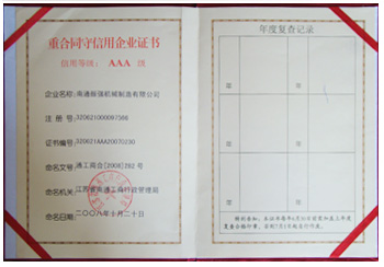 江蘇振強(qiáng)機(jī)械科技股份有限公司 >> 公司簡介 >> 資質(zhì)證書 >> 重合同守信用企業(yè)證書