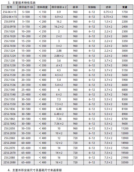 (1)敝開型(ZSG-□×□)為座式,無防塵蓋板,結構,用于大篩分能力、無粉塵污染的顆粒物料的篩分作業(yè)