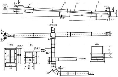 空氣斜槽輸送機(jī)由數(shù)個薄鋼制成的槽子聯(lián)接組成,并沿其輸送方向布置成一定的斜度。空氣輸送斜槽槽體沿著輸送方向安裝成向下傾斜4%~6%的斜度。